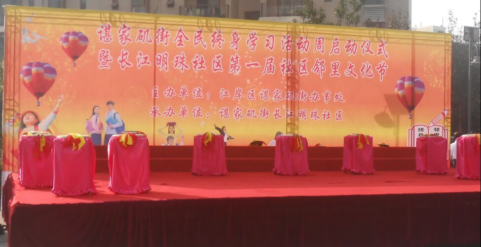 2015年10月16日我公司領(lǐng)導(dǎo)以江岸區(qū)和諧單位的榮譽(yù)出席江岸區(qū)諶家磯街全民終身學(xué)習(xí)活動(dòng)周啟動(dòng)儀式暨長(zhǎng)江明珠社區(qū)第一屆社區(qū)鄰里文化節(jié)。